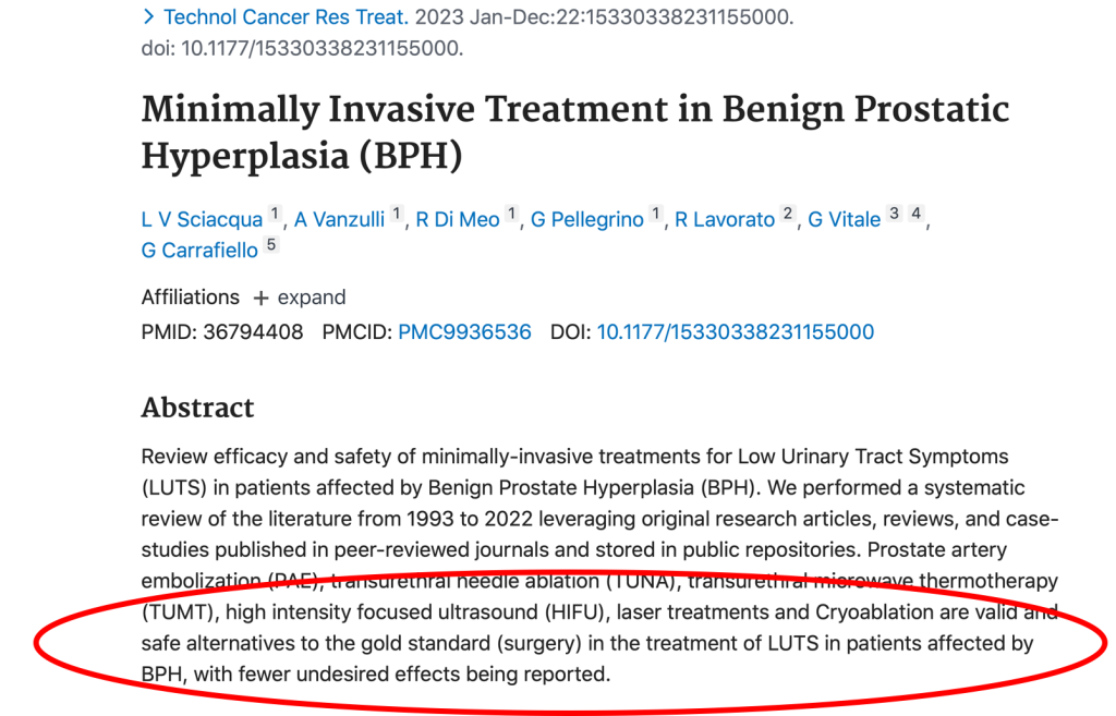 Към днешна дата няма значителни разлики в ефикасността на лечението сред минимално инвазивните хирургични техники, разработени за доброкачествена хиперплазия на простатата (ДПХ). Проучванията, сравняващи успеваемостта на тези процедури, често заключават, че методите предлагат сходна ефективност и техните странични ефекти като цяло са на приемливи нива. При тези обстоятелства фокусът се измества към избора на техника с най-малко странични ефекти сред подходящите за пациента (в много случаи може да е подходящ повече от един метод).